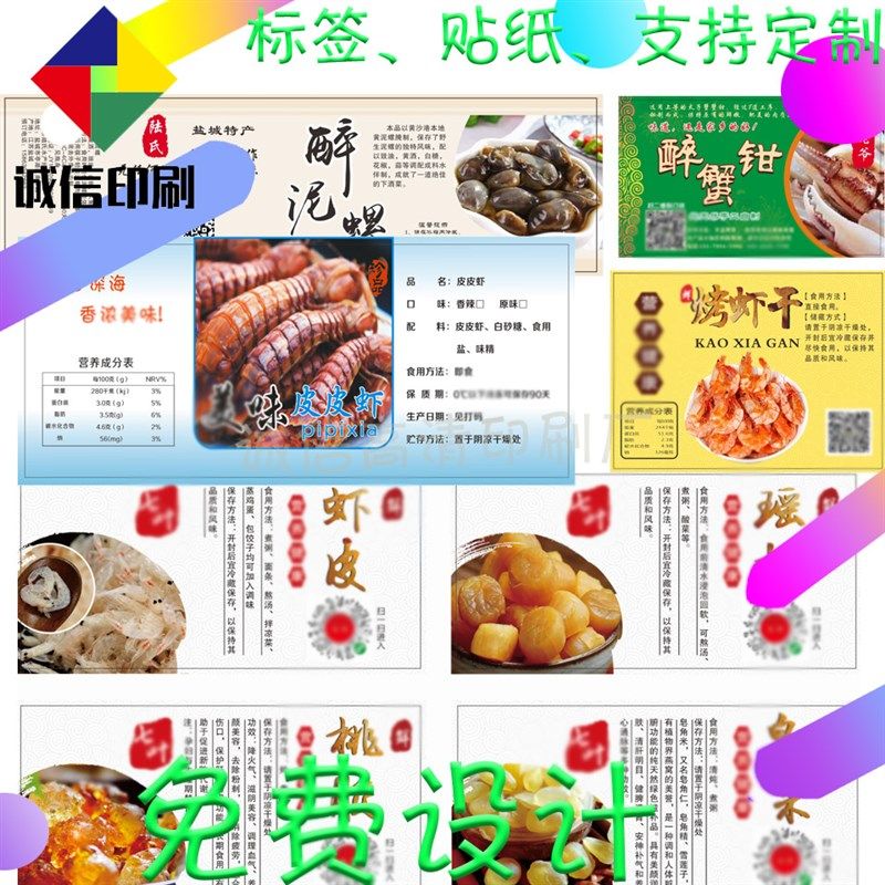 定制龙虾尾c包装贴纸印刷海蜇丝醉蟹防水不干胶标签鱼干商标设计热门设计联盟服务商