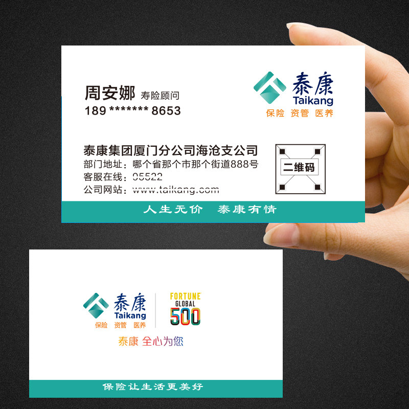 泰康人寿名片制作订做泰康保险名片磨砂防水pvc名片复印免费设计热门设计联盟服务商