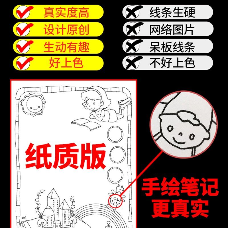 好书推荐卡读书A4m小学生手抄报半成品模板卡阅读16K黑白线描涂色热门设计联盟服务商